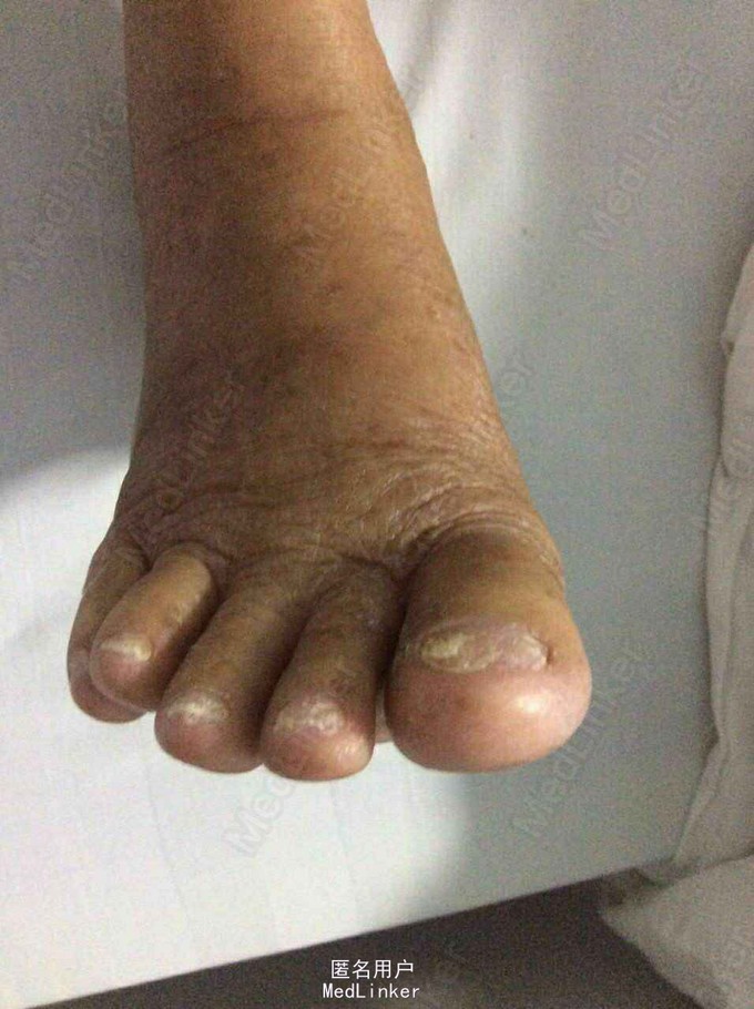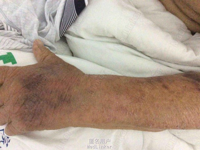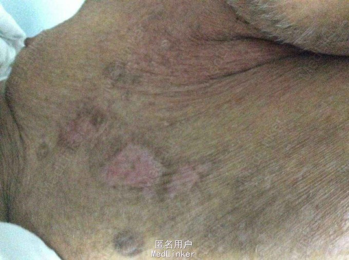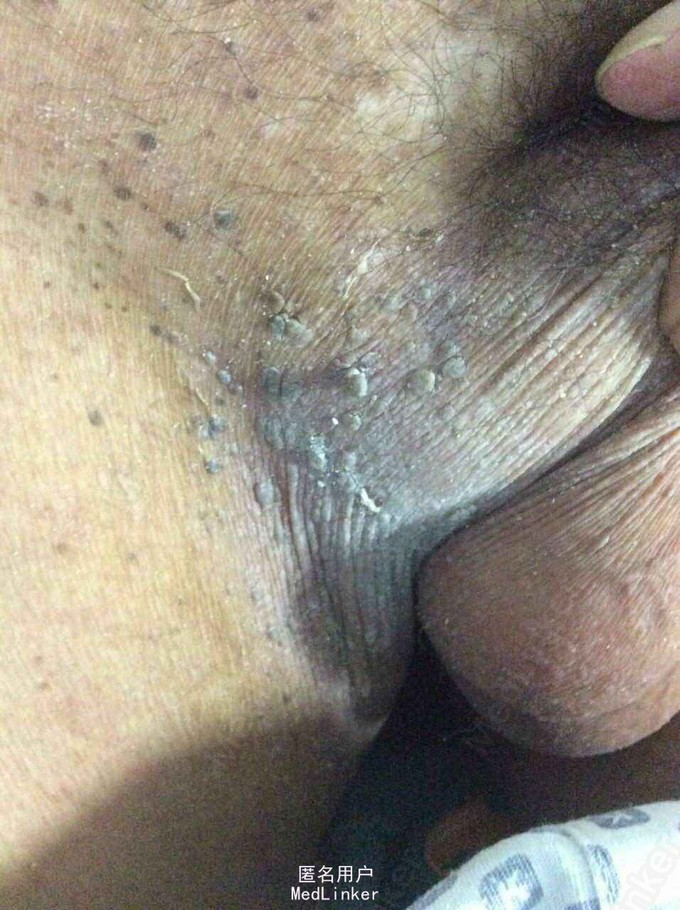 查体:T36.6℃ P78次/分 R18次/分 Bp155/82mmhg发育正常,营养中等,神志清楚,精神正常。皮肤温暖,未见皮肤花纹。皮肤粘膜无黄染、全身多处见皮疹及出血点,皮肤弹性良好,浅表淋巴结未扪及肿大。头颅五官无畸形,眼睑未见水肿,眼窝未见凹陷,结膜未见充血,巩膜未见黄染。双侧瞳孔等大等圆,直径约2.5mm,对光反射灵敏。外耳道及鼻腔无异常分泌物。口唇红润,口腔粘膜光滑,咽部未见充血,双侧扁桃体无肿大。颈无抵抗,气管居中,双侧甲状腺未扪及肿大。胸廓对称,无畸形,未见三凹征,呼吸平稳,双侧语颤正常,无皮下捻发感,双肺叩诊清音,双肺呼吸音清晰,未闻及啰音。无胸膜摩擦音。心前区无隆起,心尖搏动位于左第五肋间左锁骨中线内约0.5cm处,心尖搏动无弥散。心界无扩大,心率78 次/分,心律齐,心音有力,未闻及心脏杂音,无心包摩擦音。腹部平坦,触诊软,全腹无压痛及反跳痛,未扪及包块。肝脏右肋下未触及,脾脏左肋下未触及。腹部叩诊移动性浊音阴性,肠鸣音正常。肛门及外生殖器无畸形,脊柱四肢无畸形,双下肢水肿。克氏症、巴氏症等病理征未引出。 皮肤专科情况:患者皮疹分布在全身,见致密红疹遍布全身,点状,未高出皮肤,鲜红或者暗红色,部分皮肤溃烂,见基底潮红,类似烧伤创面改变,创面见黄绿色分泌物,恶臭,创面周边红肿热痛明显。皮肤溃烂以躯干、双上肢、会阴等处严重。创面未见三度肉芽创面,未见红白相间创面。 辅助检查:单纯带状疱疹抗体测定四项:+。血常规:血常规:WBC 11.4x10-9/l, 76.14x10-9/l, 提示血象升高,感染存在,超敏C蛋白反应-,生化:电解质钾离子2.82毫摩尔/升,肾功能:尿素氮正常值,肌酐135毫摩尔/升,稍高,心肌酶:乳酸脱氢酶363u/l ,乳酸脱氢酶同工酶1 73u/l,a-羟丁酸脱氢酶304u/l,其他生化值:总蛋白53克/升, 白蛋白29.8克/升,谷胺酰转肽酶143u/l,CT:1、右肺下叶少量机化性病灶。2、主动脉及冠状动脉粥样硬化。3、提示脂肪肝。B超:轻度脂肪肝。前列腺增生。胆囊、脾脏、胰腺、双肾、输尿管、膀胱未见明显异常。