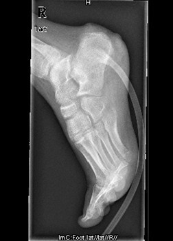 诊断:1、右足清创缝合术后皮肤软组织坏死伴感染,2、右跟骨骨折,3、右胫骨远端骨折。 治疗:择期手术。