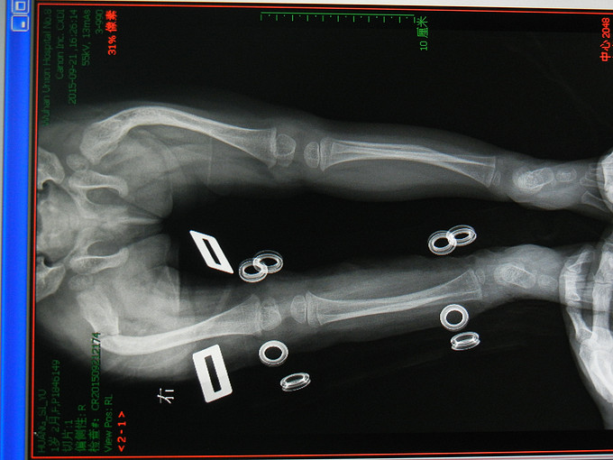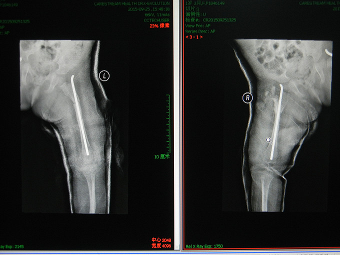 诊断:右股骨骨折,成骨不全。 行手术治疗。