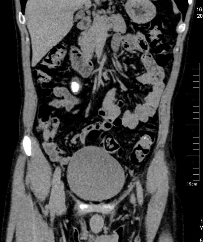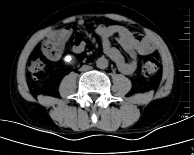 老年男患,51岁。 1主诉:以“右腰肋部突发疼痛2天”为主诉入院。 2现病史:患者入院两天前无明显诱因出现右侧腰肋部突发绞痛,疼痛不能忍受,无恶心呕吐,休息后可缓解。就诊于我院急诊,完善中下腹平扫CT检查提示:右输尿管上段多发结石,右肾及输尿管重度积水,右肾萎缩。患者现求进一步诊治入我科,我科以“右侧输尿管结石伴右肾积水”为诊断收入院。患者病来饮食睡眠可,大便正常,无尿频尿急尿痛,近期体重无明显变化。 3既往史:患者曾患双肾结石十余年(右肾较大),曾行一次体外碎石治疗,疗效不清楚。十年来曾间断口服“石淋通”药物治疗,未行系统诊治。否认高血压、糖尿病病史,否认冠心病病史。否认肝炎、结核等传染病史,否认重大外伤史,否认输血史,8岁时行急性阑尾炎手术,否认食物、青霉素等药物过敏史。近期未服用阿司匹林。