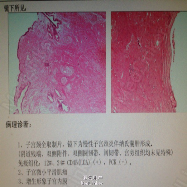 诊断:宫颈原位癌 处理:腹腔镜子宫全切术+双侧附件切除术 术后病理如图