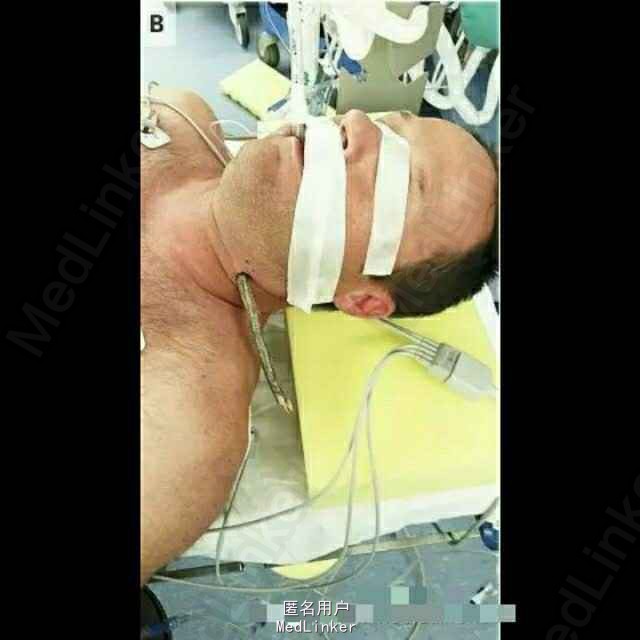 40岁男性患者,平素健康,在野外骑行山地自行车时不慎跌倒,颈部被一根直径2 cm的树枝刺穿。患者未自行拔出树枝,后自行到急诊室求医
