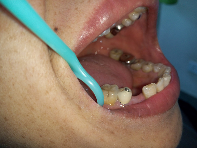 牙体缺损,牙列缺损,37、47龋坏,36残冠 治疗计划:1、拔除36牙、拟拆除37牙全冠 2、治疗37、47龋坏 3、视37情况制定修复计划 看到如此口内情况,不用想也知道此患者对口腔卫生的忽视,果然在交流到一半时,患者听不下去了,要求尽快简单的修复。 1、拔除36牙 2、制作45全冠 3、活动牙修复36、44牙缺失(37、47牙暂不处理)