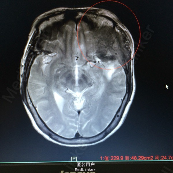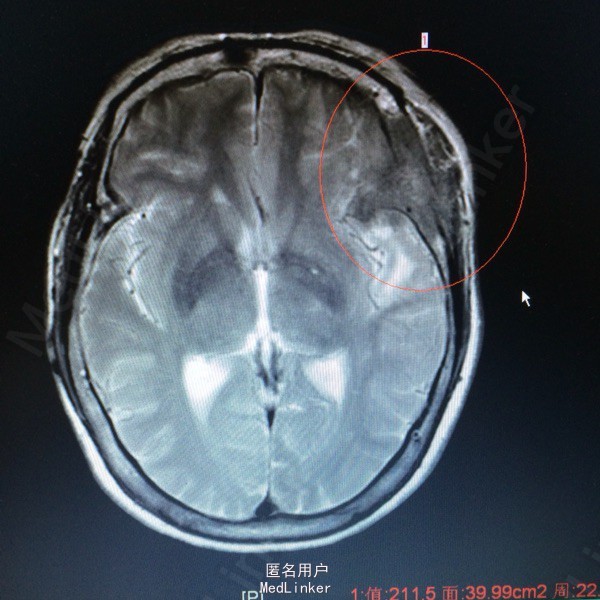 主诉:发现左侧额颞部包块2年余 病史:患者63岁女性,2年前无明显诱因出现左侧额颞部包块,无压痛等症状。1个月前开始出现左侧额颞部麻木不适,于外院查头颅MR提示:左侧额颞部占位。