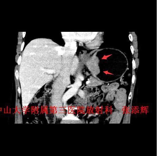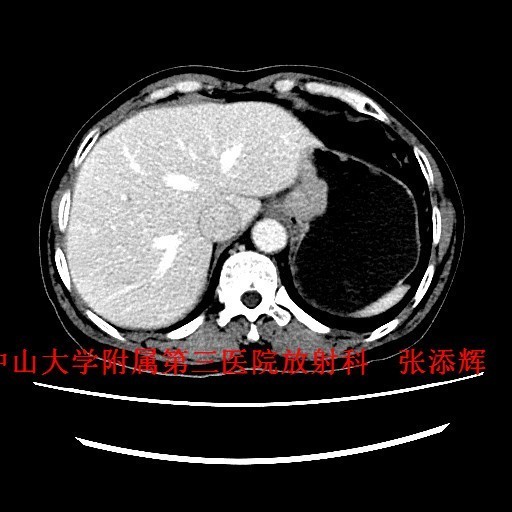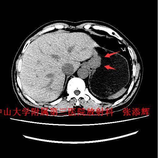 讨论:贲门癌发病率和病死率均较高,临床上其诊断主要依靠胃镜检查+病理活检,然而CT检查也是贲门癌必不可少的术前检查,术前CT不仅能了解贲门癌病变局部情况,还可以观察周围结构及远处转移的情况,特别是对于淋巴结的转移,贲门癌淋巴结转移多位于贲门旁、胃小弯、胃左动脉及腹腔动脉周围淋巴结,平时读片是应该多注意这些部位的淋巴结是否肿大。 参考文献:Stein HJ,Feith M,Siewert JR. Cancer of the esophagogastric junction [J].Surgical Oncology,2000,9(01):35-41 .doi:10.1016/S0960-7404(00)00021-9 .