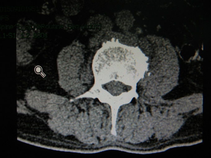 患者男,56岁。因“发热伴腰部疼痛3月”入院。现病史:患者于2015年6月中旬无明显诱因出现发热,体温多波动在37-38度之间,最高38.5摄氏度,下午为主,伴下肢关节疼痛。无鼻塞、流涕、喷嚏、咳嗽、咳痰、头痛、头晕、腹痛、腹泻等,以感冒给予治疗后症状无好转,7月中旬到当地医院就诊,考虑为布鲁氏菌感染,给予利福平4片/次,1次/日,多西环素1片/次,2次/日及相关治疗,症状无明显好转,后就诊我院,予以抗感染、退热及对症支持等治疗,确诊为“腰椎结核”后出院行抗结核治疗半月,门诊以“腰椎脓肿”收入我科。起病以来患者一般情况良好。