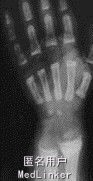 头围43cm,前囟2.5X2.5cm,枕秃,方颅,未出牙,胸廓无畸形,无赫氏沟,无手足镯征。 电解质:钙1.96mmol/L,磷 1.0mmol/L。X线示:腕骨骨化中心1枚,尺桡远端呈毛刷样改变,干骺端皮质疏松,临时钙化带消失。