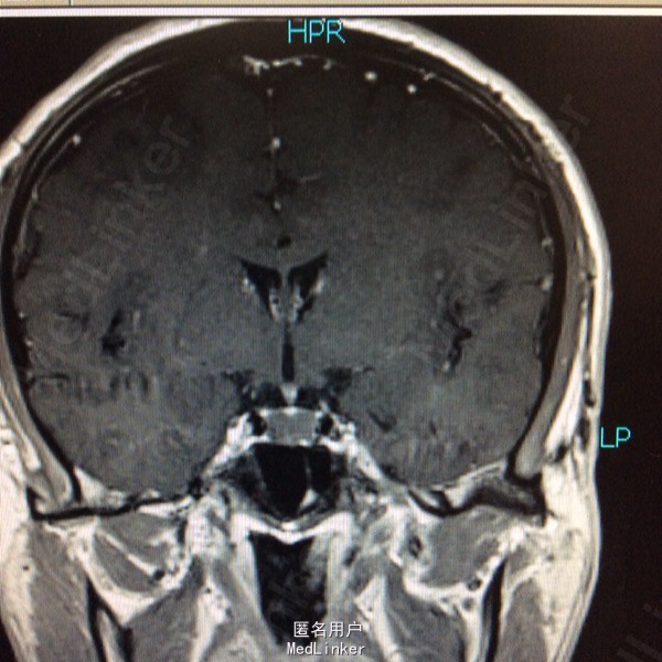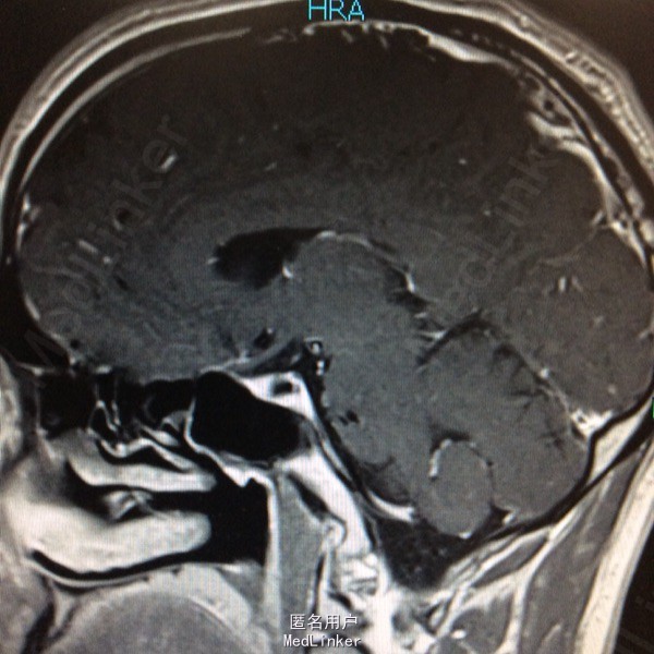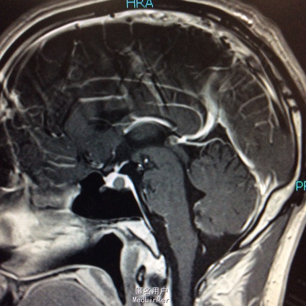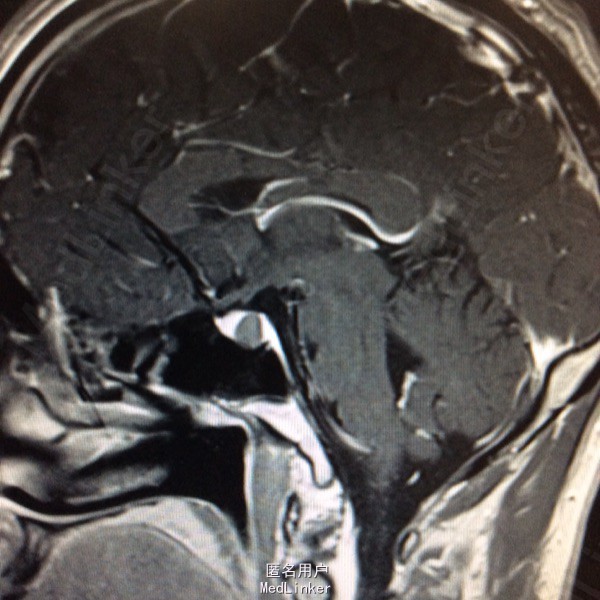 查体未见明显阳性体征,发育正常 头颅CT提示鞍区少量出血 MRI增强提示鞍区占位病变,大小约0.8*1.5cm 考虑垂体瘤卒中