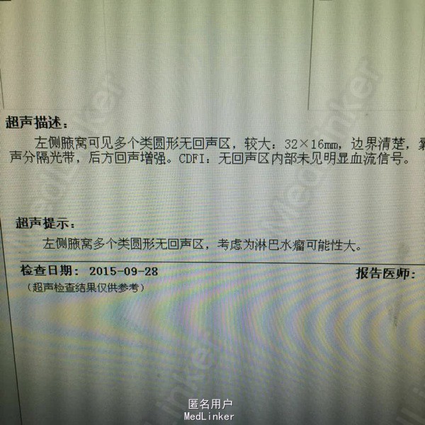 女,28 岁。2年前发现左腋下肿物,近来增大。