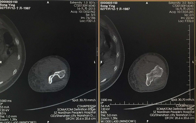 查体:患肢肿胀畸形,肘关节活动受限,感觉血运未见异常。 X线:右肱骨远端骨折 CT:右肱骨远端骨折,骨折线波及关节面