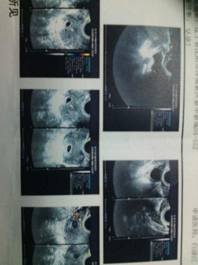 查体:T:36.5℃,P:80次/分,BP:120/80mmHg,一般状态良好,心肺听诊未闻及异常,肝脾肋下未触及,腹软,无压痛、反跳痛及肌紧张。 妇科检查:外阴经产型,阴道通畅,宫颈光滑,宫体前位,约11cm,质硬,活动度可,双附件区未触及异常。 辅助检查:血常规:WBC:8.8×109/L,Hb:130g/L,PLT:320×109/L, 血型:AB型RH阳性 白带常规:清洁度II°。 彩超:子宫前位,大小约11.6×9.6×9.1cm,宫腔内见2.2×2.9×1.7cm妊娠囊,胎芽0.6cm,可见胎心搏动。子宫多发肌瘤,较大者位于子宫左侧壁下段处,大小约6.7×5.8cm,部分结节凸向宫外,部分结节压向宫腔。提示:宫内早孕,子宫多发肌瘤。 心电图:正常。