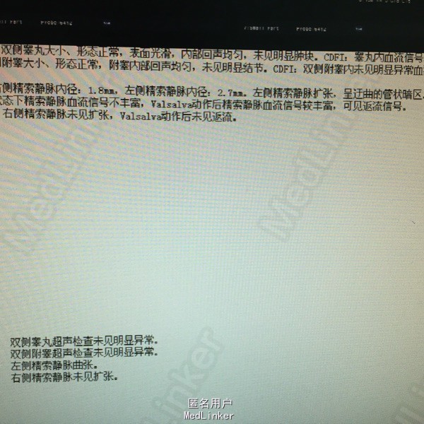 3. 左侧阴囊内可触及蚯蚓状团块,平卧位团块消失; 4. 辅查:彩超提示:左侧精曲;左肾静脉压迫综合症;尿常规未见血尿及蛋白尿;