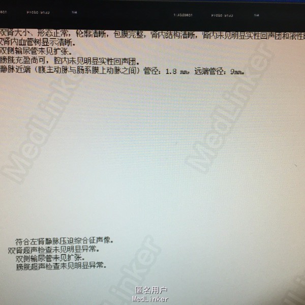 5. 诊断:肾静脉压迫综合症;左侧精索静脉曲张; 6. 处理:显微镜下左侧精索静脉结扎术+腹壁下静脉转流术;