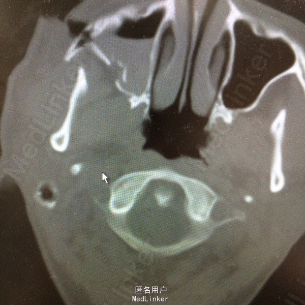 右颧面部开放性创口,CT示右ZMC骨折。