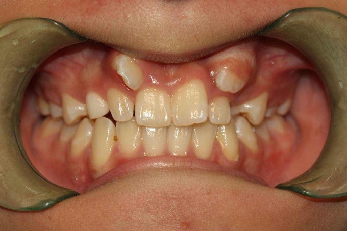 患者:女,19岁,主诉牙齿不齐,希望矫治。 检查:13根在11和12之间,23根在22唇侧,12和22为过小牙