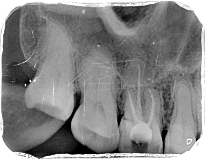 主诉:右上后牙疼痛不适数日 现病史:数日来,患者左上后牙曾行树脂充填,今日来疼痛不适影响进食睡眠来诊。 既往史:健康 过敏史:无