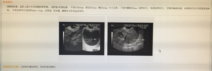 患者因“发现盆腔包块4年”入院。患者2011年体检时B超提示附件囊肿,大小约3cm,定期复查囊肿无明显增大。今年9月7日我院复查B超提示“左附件囊性肿块50*49mm,考虑卵巢冠囊肿。为进一步诊治入院。