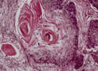 查体:系统检查未见明显异常。 皮肤科检查:背部一2.0×3.0cm红色肿块,表面光滑,质硬,有浸润感,边界不清,活动度差,轻度压痛。 实验室检查:尿常规潜血阳性,血沉加快,癌胚抗原增高。 胸部CT:中心型肺癌,病理检查为中分化鳞状细胞癌。 余未见明显异常。