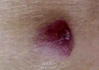 肺癌皮肤转往往预示着病程已达晚期,生存期3到12个月。该病例进展迅速,出现咳嗽2个月就已经有皮肤转移,预后较差。doi:1000-4963(2012)03-0174-02