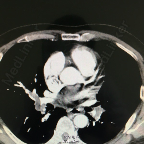 入院查体见呼吸较平稳,氧饱和度95%左右,嘴唇发紫;CT提示双肺大面积动脉栓塞,心脏彩超提示肺动脉高压,双下肢彩超未见静脉血栓。