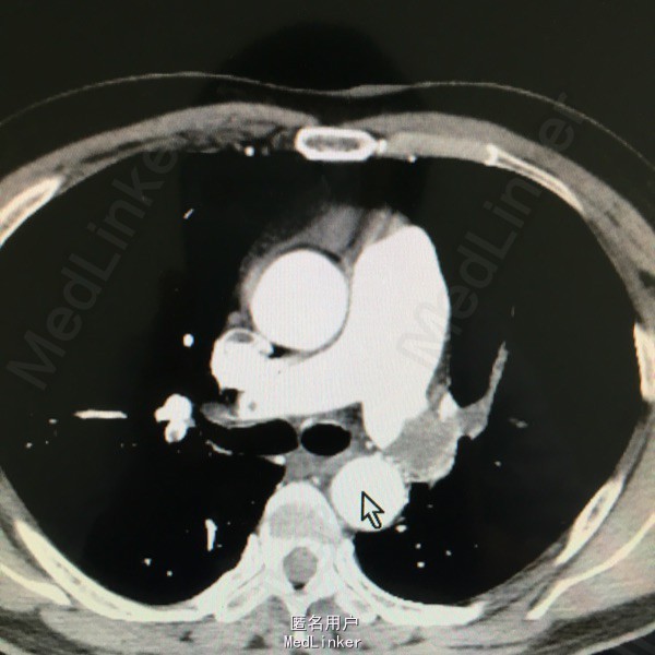 男性,61岁,因气紧3天入院。平时剧烈活动或活动量加大后感气紧。8年前有下肢深静脉血栓,后一直口服阿司匹林。