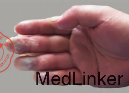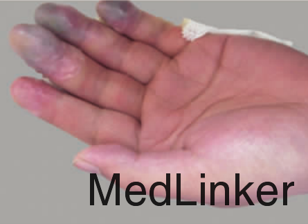 患者男, 39 岁, 于 2010 年 4 月外出旅行登山途中, 突遇暴风雪, 无处躲避, 导致双手手指远节冻伤, 伤后 16 h 来我科就诊。就诊时患指已经解冻, 整形科专科检查见左手第 3、 4、 5 指、 右手第 1、 3、 4、 5 指末节冻伤, 患指有水疱形成, 疱液呈血清样, 冻指色泽黑紫, 皮肤触之温凉, 感觉迟钝, 活动障碍, 双手肿胀明显(图 1 ~2)。