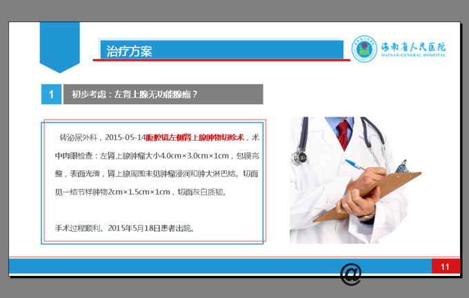 初步诊断: 1.左肾上腺占位查因 2.胆囊结石 3.肝囊肿 4.子宫全切术后 术后诊断 1.成人肾上腺神经母细胞瘤 2.胆囊结石 3.肝囊肿 4.子宫全切术后