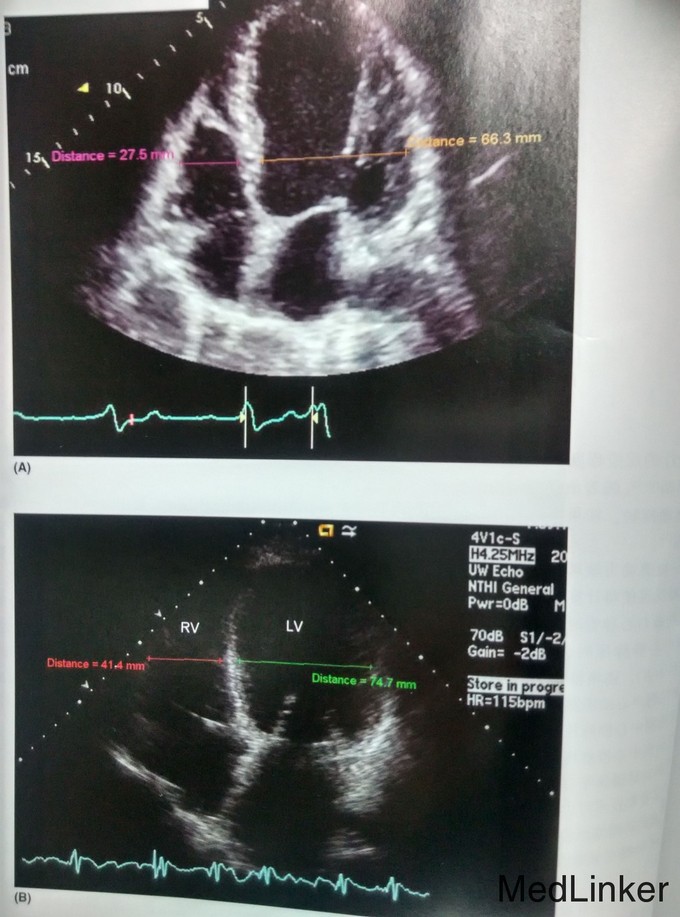 患者目前感觉运动耐量恢复到发病前的状态,能全天工作,但超声心动图显示射血分数只有10-20%的轻度恢复,左心室仍然扩大成球形。规律使用螺内酯25mg。 讨论:超声心动图可以提供哪些信息 1.跟左心室功能有关的指标。 2.左心室大小。 3.关于右心室的大小和功能, 4.关于心房的功能和大小。