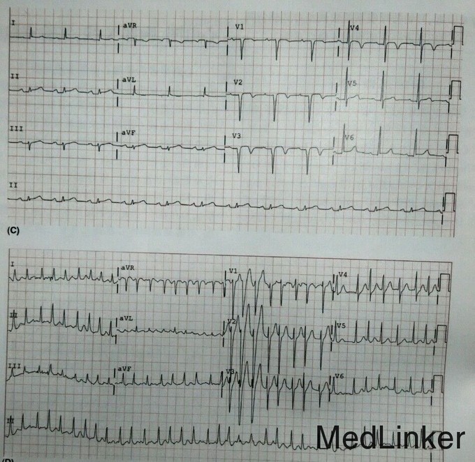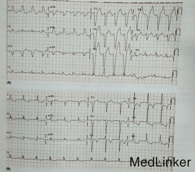 查体: 血压 143、98mmhg, 心率117次/分, 呼吸23次/分,体温不高,中心静脉压 14cmH2O, 双肺可闻及湿罗音,S1柔和,持续S2分裂,可闻及重叠奔马律,心尖部可闻及2/6级二尖瓣收缩期杂音,心尖冲动向左下移位,腹部未见膨隆,肝脏不大。 实验室检查:Na+ 137mmol/l,K+ 4.6mmol/l,CL- 104mmol/l,HCO3- 22mmol/l , BUN 24mg/dl, cr 1.2mg/dl, BNP 1247pg/ml , Hb 15.2g/dl, WBC 9.5*10E9/L . 12导联心电图提示左束支传导阻滞,宽QRS波伴继发性ST-T波改变,胸部X线:心脏扩大,肺淤血,胸腔积液(双侧)。