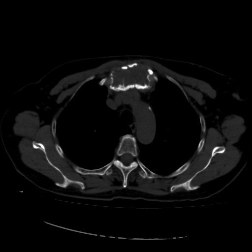 查体:颈部正中可见一约7cm长弧形手术瘢痕,愈合良好,颈部未触及异常软组织肿块,未触及明显肿大淋巴结。胸骨上段扪及一肿物,活动度差。 辅助检查:全身碘扫描示:甲状腺癌术后:全身多发性骨转移瘤,摄碘功能良好;左肺转移灶,无摄碘。