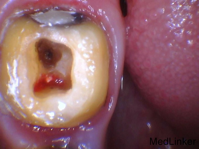 右下后牙两个月前外院治疗,一直疼痛不适,现要求重新治疗