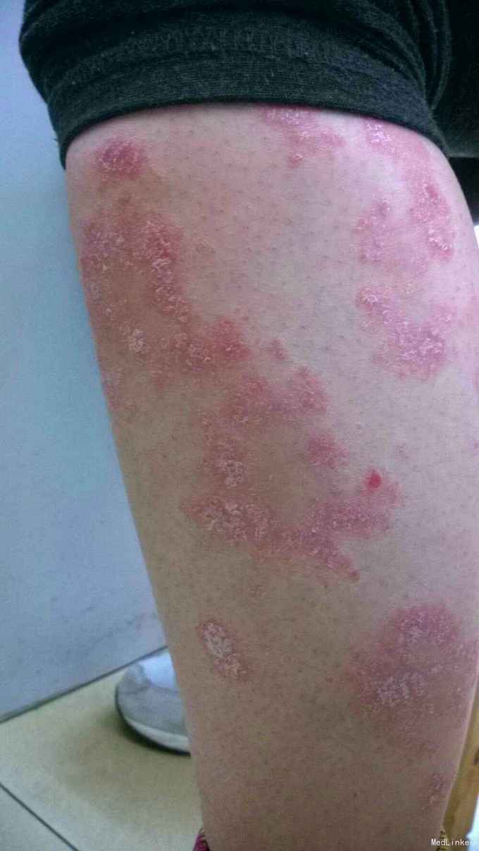 双下肢、躯干红斑、丘疹、脱屑伴痒1年