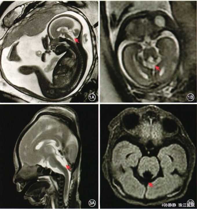 讨论:小脑缺失多与染色体缺失有关,本类患儿生后存活率低,约1h-76岁。孕期B超是孕期发现本病的首选检查,但MRI不受孕妇体位等影响,效果更佳。