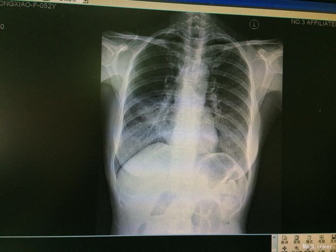 随访:患者咳嗽咳痰明显好转,要求出院,复查胸片示肺炎较前吸收,遂办理带药出院。嘱其1周后门诊复诊。 讨论:该病例属典型而较为简单的肺炎,结合实验室及影象结果可诊断。就该患者而言,有鼻咽癌放疗史,现有进食呛咳等后遗症,此次肺炎考虑其吸入性因素可能性大,且不排除以后反复并发吸入性肺炎可能。