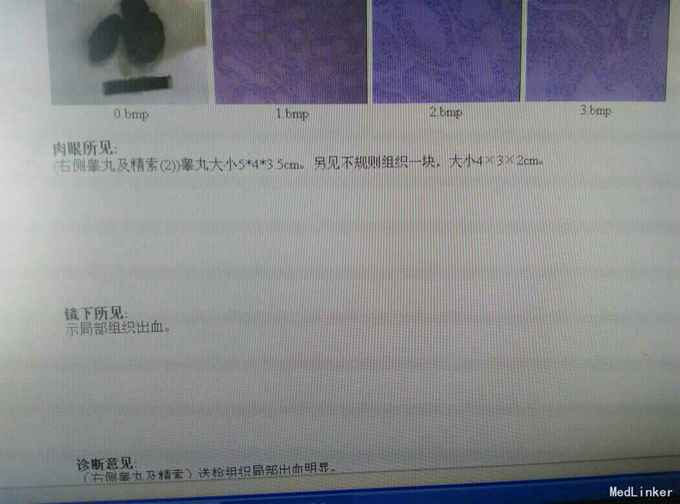 单侧睾丸离断半小时。 患者半小时前,在予母猪配种时,被公猪咬去右侧阴囊皮肤及睾丸,患者自行将睾丸冷藏,伤口出血猛烈,遂急送入我科住院治疗。
