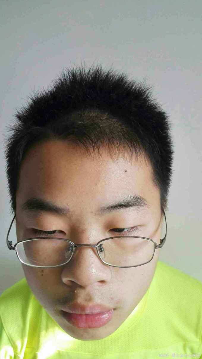 局部脱发伴头发分叉半年。12岁患儿,于半年前突然发现近前额处头皮有局部区域头发稀疏,且这一区域头发长不长,且末端分叉,无其他不适,夜间睡眠可,大小便正常。