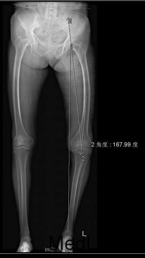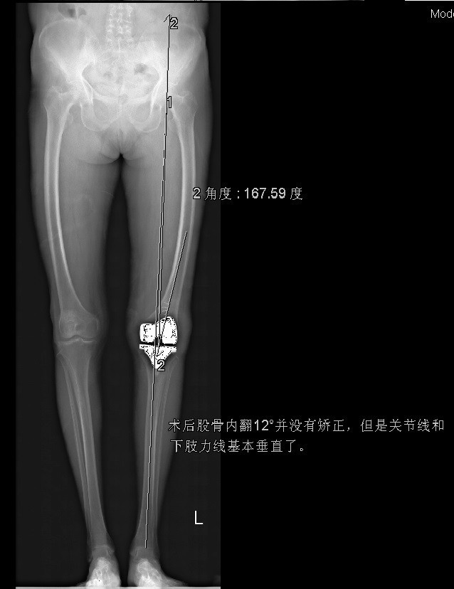 患者术后功能良好,症状缓解,生活治疗提高 1、股骨外翻截骨如何在X线片上定角度?