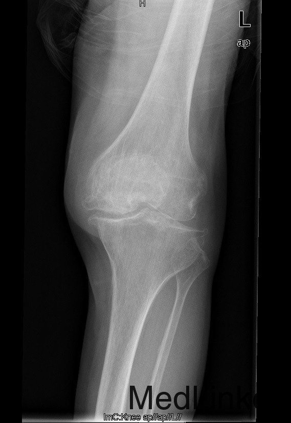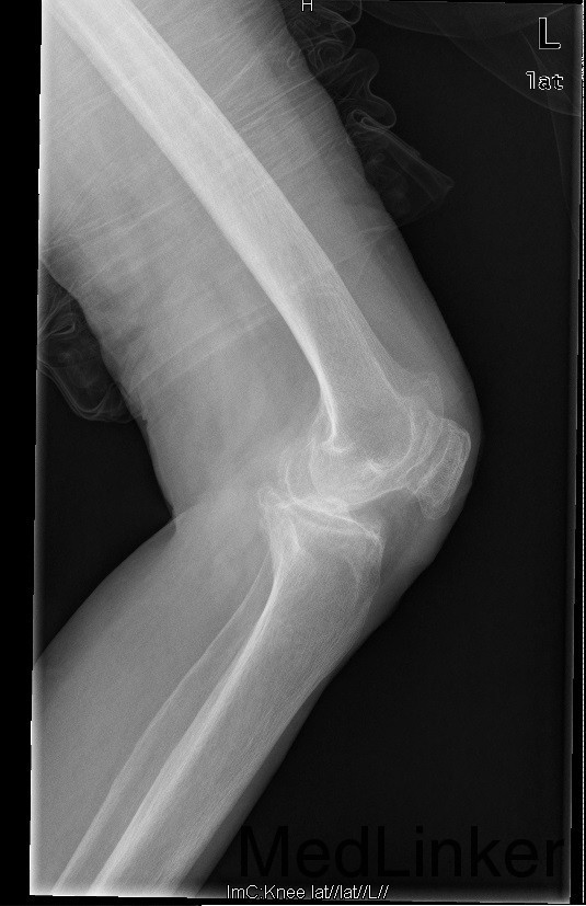 主诉:左膝疼痛7年,加重伴行走困难2年 现病史:7年前患者开始出现左膝关节疼痛,负重行走、下楼时疼痛可加重,休息后可缓解。经服止痛药、外用膏药等处理后疼痛缓解。但症状反复发作。2年前疼痛加重且行走困难,平路行走仅能坚持约20余米,上下楼梯艰难,下蹲不能。入院前3月跌伤左膝部在我院断为“左髌骨骨折”住院保守治疗好转出院。现患者膝关节疼痛明显,生活受限,为行进一步治入院。