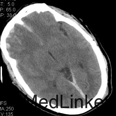 主诉:头部外伤7小时 病史:患者于7小时余前不慎从2米高处坠落,头部着地,并昏迷,左侧外耳道出血,无呕吐,无肢体抽搐,无明显头晕及头痛,无胸闷心悸,呼120入我院急诊诊治,行头颅CT提示有:头部螺旋CT平扫:1、蛛网膜下腔出血;大脑镰硬膜下出血;双侧额叶脑挫伤;脑肿胀。2、左侧枕骨骨折;左侧顶枕部头皮下血肿。3、双侧筛窦炎症。入急诊后患者神志转清,在急诊给予止血、脱水等治疗,4小时后复查头颅CT提示血肿增大及挫裂伤较前明显加重,为进一步治疗,收入我科。患者起病前,精神食欲可,二便可,体重无明显变化。