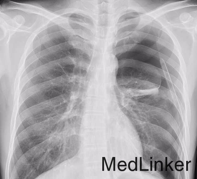 主诉:突发胸痛3小时。 现病史:患者无明显诱因于今早7:30左右突发胸痛,胸痛剧烈,呼吸困难,就诊于我院急诊,行CT检查提示:左侧气胸,请我科会诊后收入院