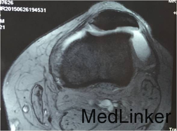 患者男,28岁,因”摔伤致左膝关节髌骨脱位7年余“入院。患者7年前无明显诱因反复出现髌骨脱位,近1个月发生3次脱位。