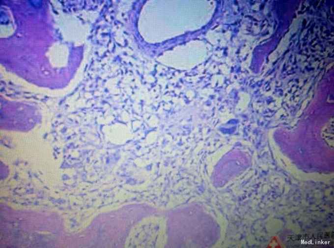 随访与讨论:说实话,在之前根本没听说过有这一个疾病,这次也是长了见识,不过完全靠的是病理科。查文献可知:原发性乳腺骨肉瘤是一种比较罕见的恶性肿瘤, WHO乳腺肿瘤学分类将其归于间叶性肿瘤,是骨外骨肉瘤的一种。在原发乳腺恶性肿瘤中发病率低于0.1%,好发于中老年女性,主要通过血道转移,最常累及肺脏,几乎无淋巴结转移。该病诊断主要依赖于病理结果。由于该病恶性程度高,对放化疗均不敏感,目前尚缺乏统一的治疗方案。所以我们也只是做了改良根治术,后期化疗综合医生决定以及患者意愿综合实施,当然全身评估是必不可少的。