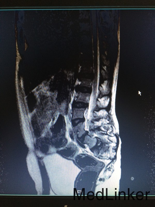 主诉:行走不稳10余年 病史:患者12岁男性,出生后即发现骶尾部包块,行走不稳,间有小便失禁,大便正常,未予特殊处理。近期患者出现行走不稳较前加重,遂来我院就诊,拟议“脊髓栓系综合征”收入院