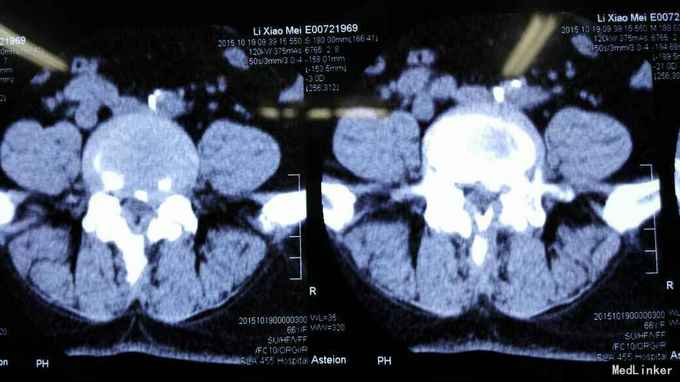 查体符合腰5神经根受压体征。腰椎CT、MRI提示腰4/5椎间盘突出,椎管狭窄。