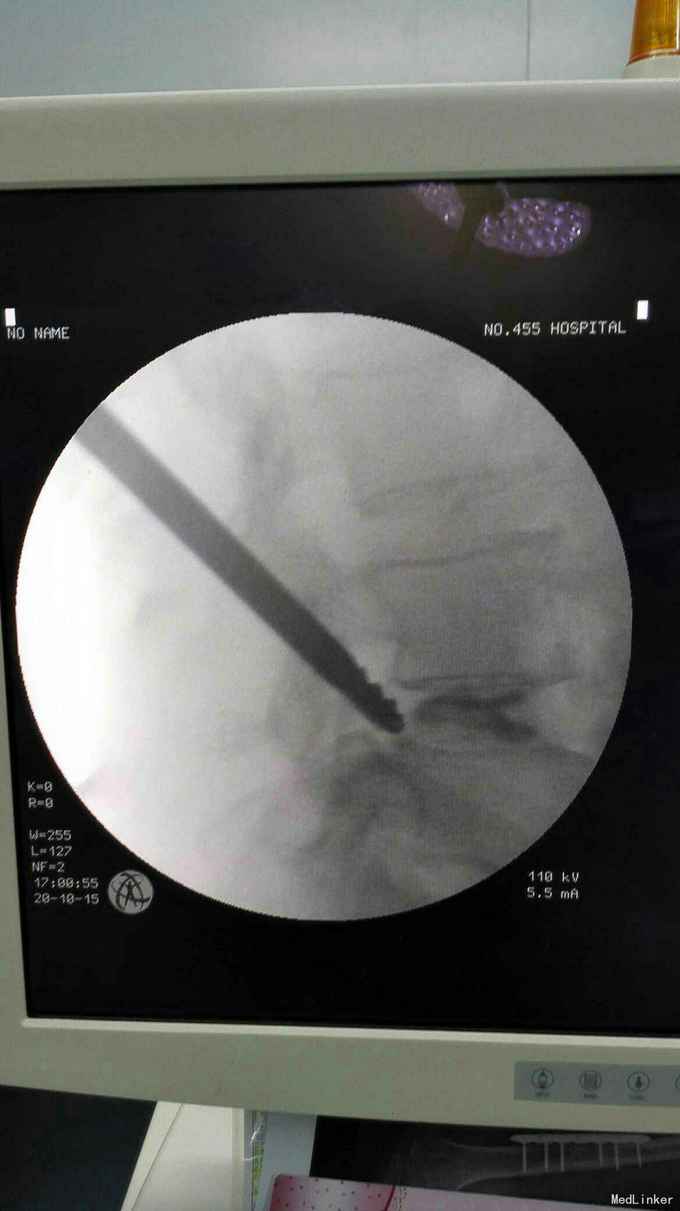 考虑腰椎间盘突出伴椎管狭窄症。行椎间孔镜下髓核摘除,椎间孔成形。