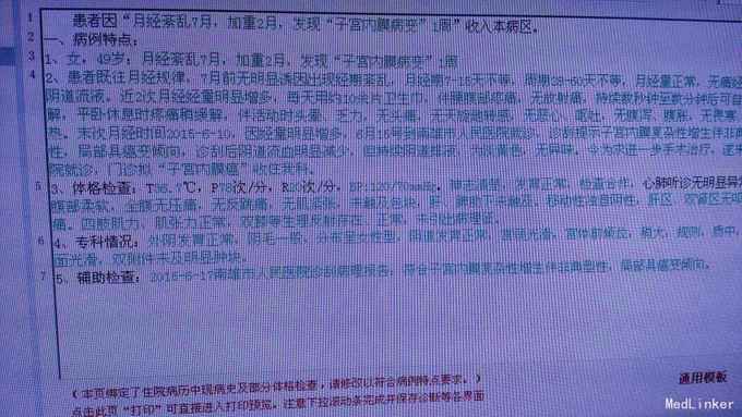 月经紊乱7月,发现子宫内膜病变1周 患者现49岁,7月前出现经期延长,未予就诊,1星期前当地医院就诊行诊刮示内膜癌,我院病理会诊子宫内膜腺癌,中分化。入院手术治疗。
