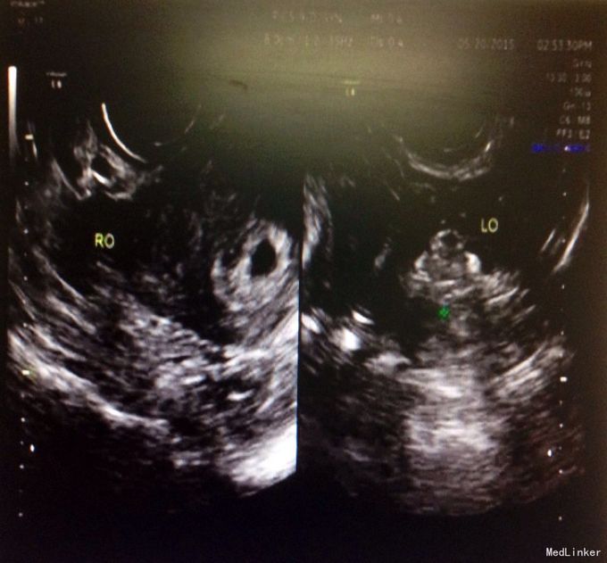 体检:生命体征正常,无压痛及反跳痛,肝脾肋下未及,肾区叩痛(-),移动性浊音(-),双下肢无浮肿,未行内诊。 辅助检查:B超及生化相关检查如图