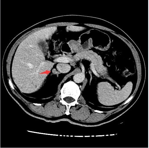 查体::血压:140/80mmHg。双肾区无红肿、隆起,无叩痛,双侧肋脊点、肋腰点无压痛。 辅查:双肾上腺CT提示:右侧肾上腺结节,考虑腺瘤可能性大,右侧小囊肿,肝内多发囊肿。
