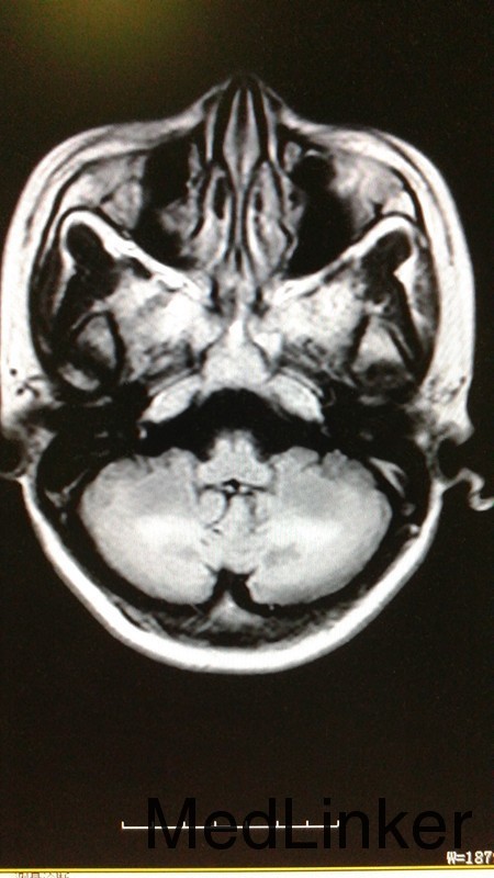 患者,女,44岁。主因反应迟钝,行走不稳4年,加重伴吞咽困难8月 患者4年前无明显诱因出现表情淡漠、反应迟钝,不与人交流,嗜睡、懒动、乏力,不修边幅,期初不影响生活未予诊治。此后上述症状逐渐加重,与人交流日渐减少,嗜睡,至两年前逐步出现行走左摇右摆,言语表达含糊不清,难以胜任日常生活,遂入院治疗,期间行头颅MRI示:1、双侧小脑齿状核、大脑脚及皮质脊髓束对称性异常信号。行跟腱检查结果示:左足纤维组织内查见结晶炎物及泡沫细胞,右足跟腱组织活检病理诊断:纤维结缔组织可见较多胆固醇裂隙、多核巨细胞形态符合黄色瘤,给予熊去氧胆酸片口服后病情好转出院。症状有所改善。服药期间自行停药。8个月前无明显诱因出现言语不利,行走不稳症状再次加重,双下肢僵硬、无力,行走不稳,需与人搀扶,遂再次入院。