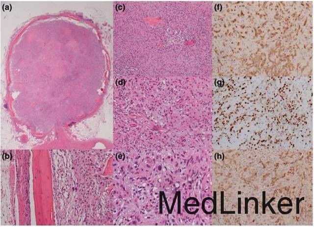 诊断:骨化的上皮样血管内皮瘤。 开始考虑血管平滑肌瘤和神经鞘瘤。在局部麻醉下,该肿物被完整切除。病理结果如下图示。